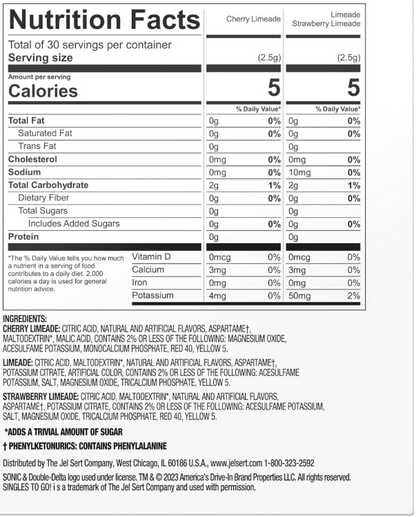 CITRIC ACID, MALTODEXTRIN*, ASPARTAME†, NATURAL AND ARTIFICIAL FLAVORS, MALIC ACID, CONTAINS 2% OR LESS OF THE FOLLOWING: ACESULFAME POTASSIUM, MAGNESIUM OXIDE, MONOCALCIUM PHOSPHATE, BLUE 1. * ADDS A TRIVIAL AMOUNT OF SUGAR † PHENYLKETONURICS: CONTAINS PHENYLALANINE