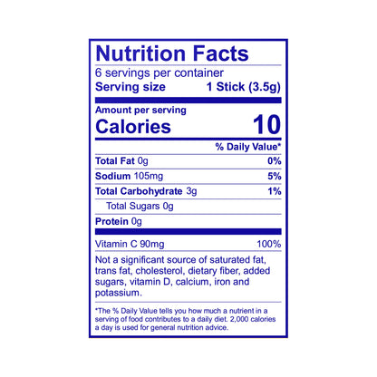 CITRIC ACID, MALIC ACID, NATURAL AND ARTIFICIAL FLAVORS, SODIUM CITRATE, XANTHAN GUM, ARTIFICIAL COLOR, MALTODEXTRIN*, ASCORBIC ACID (VITAMIN C), CONTAINS 2% OR LESS OF THE FOLLOWING: SUCRALOSE, SALT, MAGNESIUM OXIDE, DISODIUM PHOSPHATE, ACESULFAME POTASSIUM, CELLULOSE GUM, PECTIN, CALCIUM SILICATE, YELLOW 6, YELLOW 5.